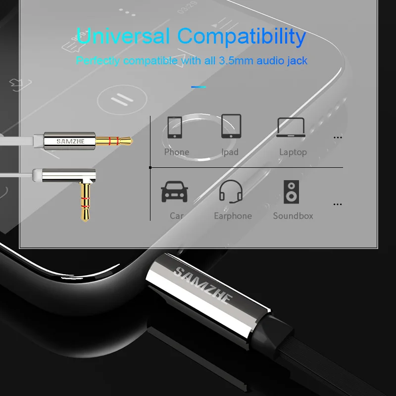 remarkable SAMZHE 3.5mm Aux Cable 90 degree Audio Flat Cable Stereo Audio Gold Plated Auxiliary Cable for Car