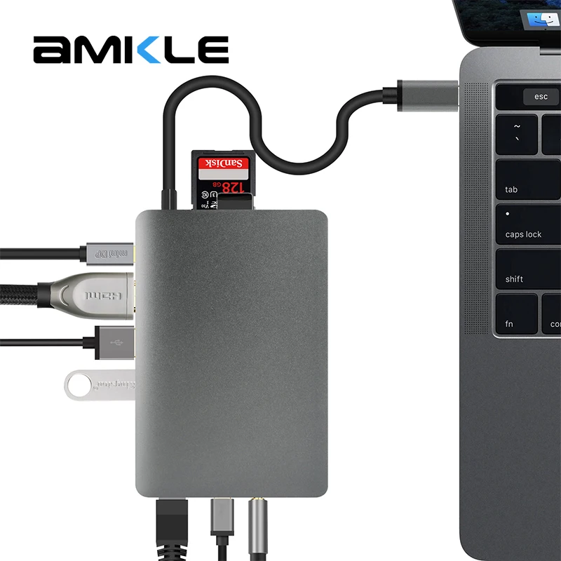 Amkle 9 in 1 USB3.1 Hub Multifunction USB-C Hub with Type-C 4K Video HDMI Gigabit Ethernet Adapter USB 3.0 USB C Type C HUB,Amkle 9in1 USB Type C HUB USB C 4K HDMI RJ45 SD/TF PD Ethernet Adapter Thunderbolt Dongle for MacBook Pro, Amkle 9in1 USB Type C HUB USB C 4K HDMI RJ45 SD/TF PD Ethernet Adapter Thunderbolt Dongle for MacBook Pro