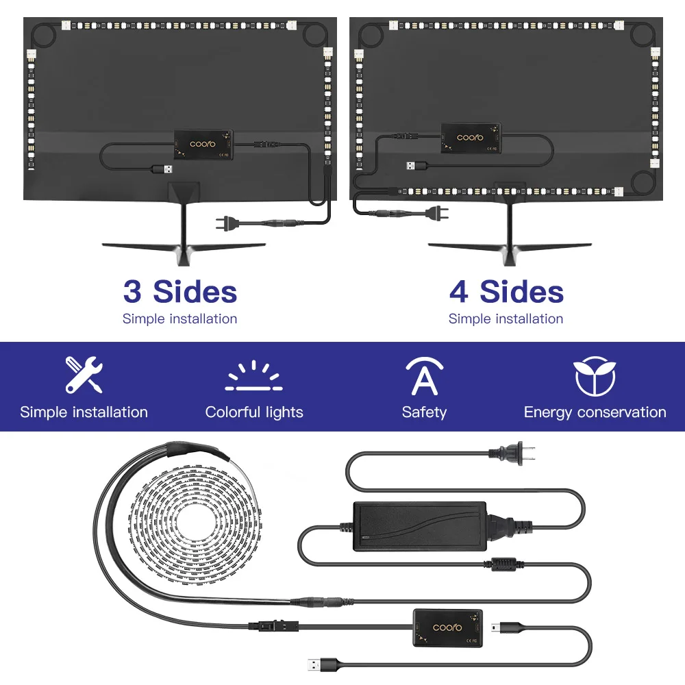 discount Coolo Ambilight Kit TV Monitor Desktop PC Screen Backlight Lighting USB LED Strip Light 5050 Tape R