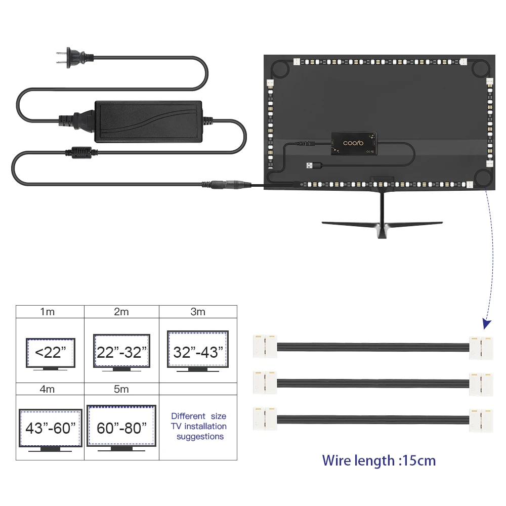 WS2812b Ambilight RGB USB LED Strip Light with 3 pin "L" Shape Connector Kit for Desktop PC Screen Ambient Lighting 1M - 5M,Addressable WS2812B LED Strip Ambilight Full Set USB LED Strip TV PC Back Lighting Dream Screen Computer Monitor 1/2/3/4/5m, Addressable WS2812B LED Strip Ambilight Full Set USB LED Strip TV PC Back Lighting Dream Screen Computer Monitor 1/2/3/4/5m